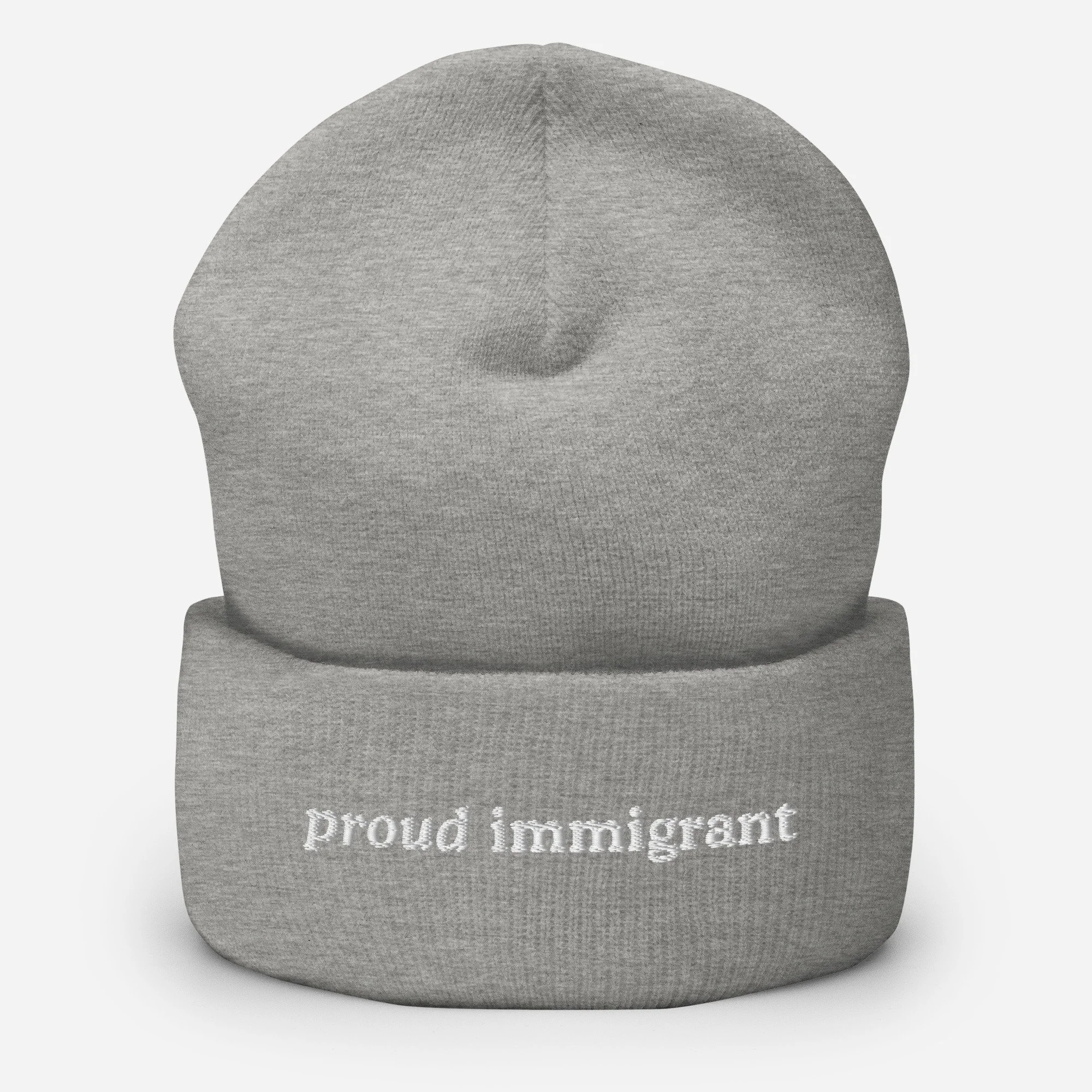 "Proud Immigrant" Embroidered Cuffed Beanie